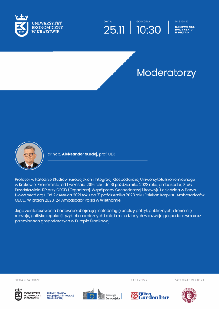 Debata naukowa połączona z Wykładem Rektorskim „Wyzwania negocjacji i implementacji umów handlowych. Umowa Unia Europejska – Mercosur” – Uniwersytet Ekonomiczny w Krakowie, 25 listopada 2025 r.